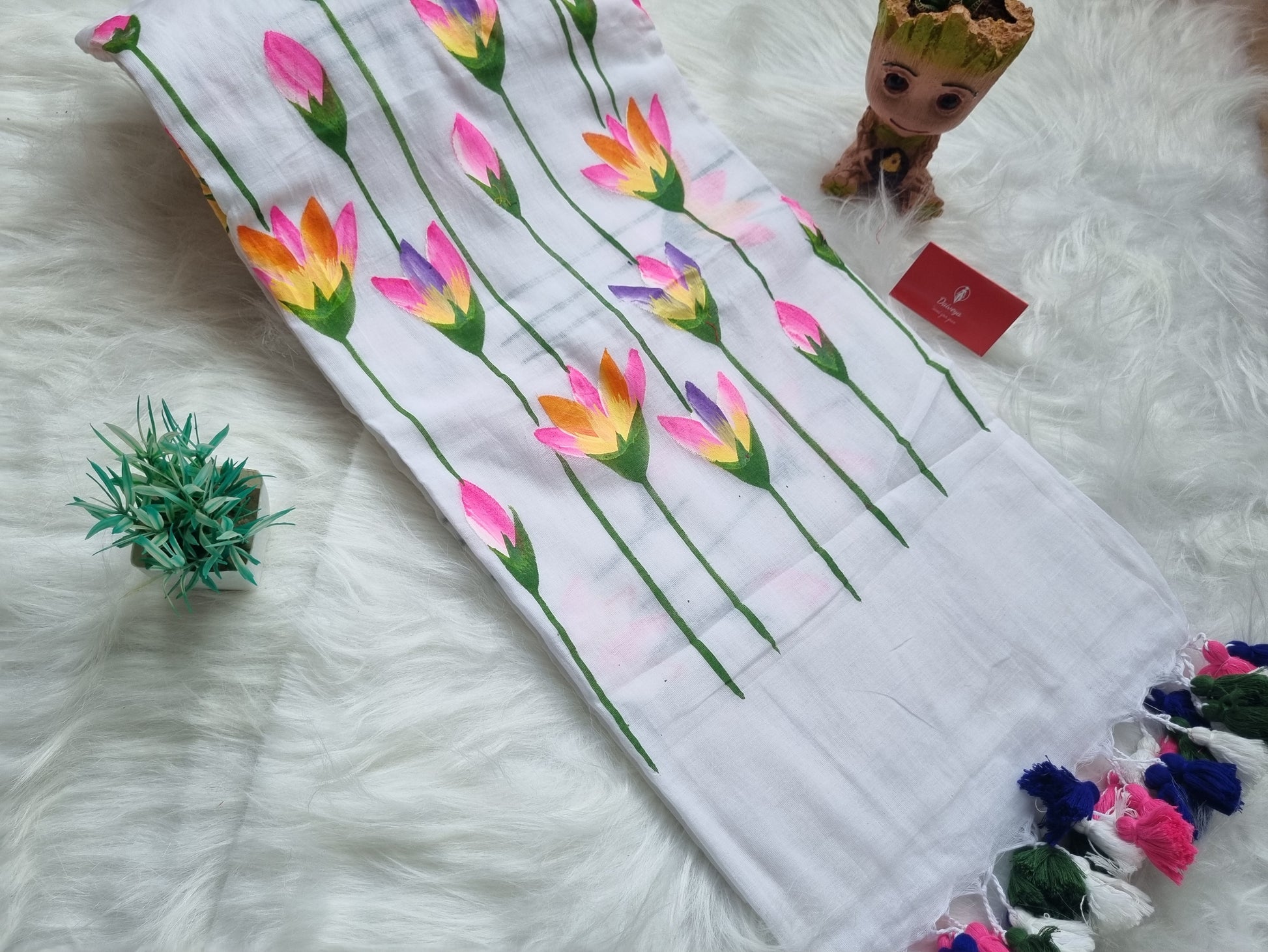 - Mulmul Cotton Saree with Handpainted .All colours available