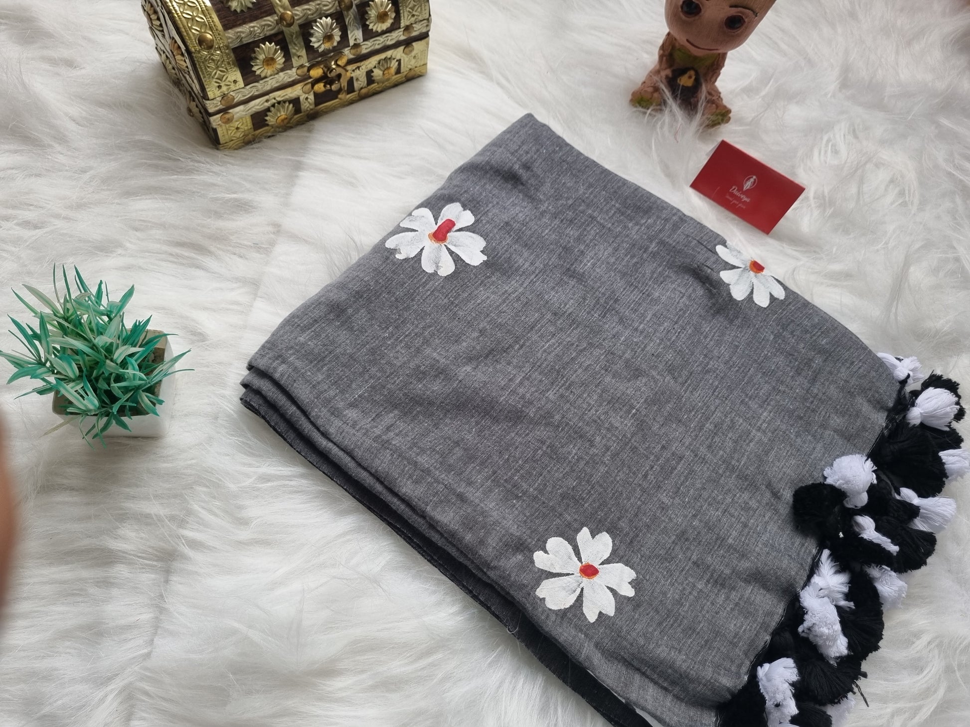 Mul cotton Jasmin Handpainted- Grey