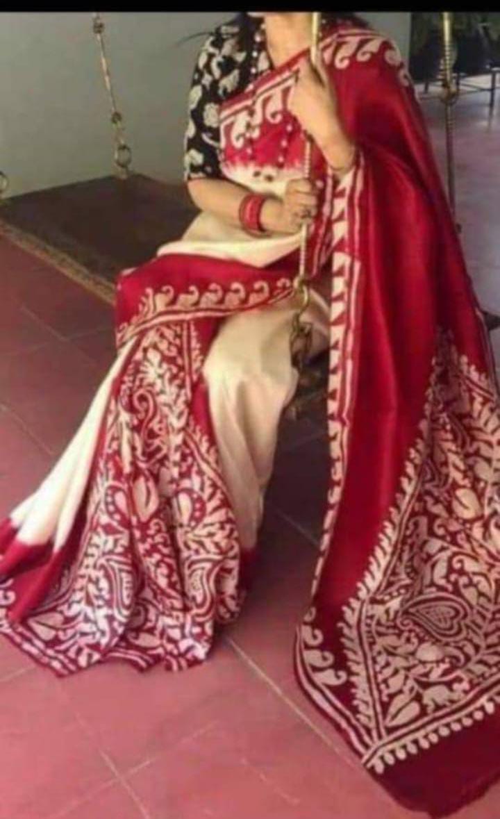 Murshidabad 3 ply pure silk Batik- Red white (custom)