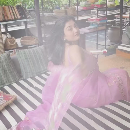 Pure Organza silk Embroidered with highlight- Baby Pink swan