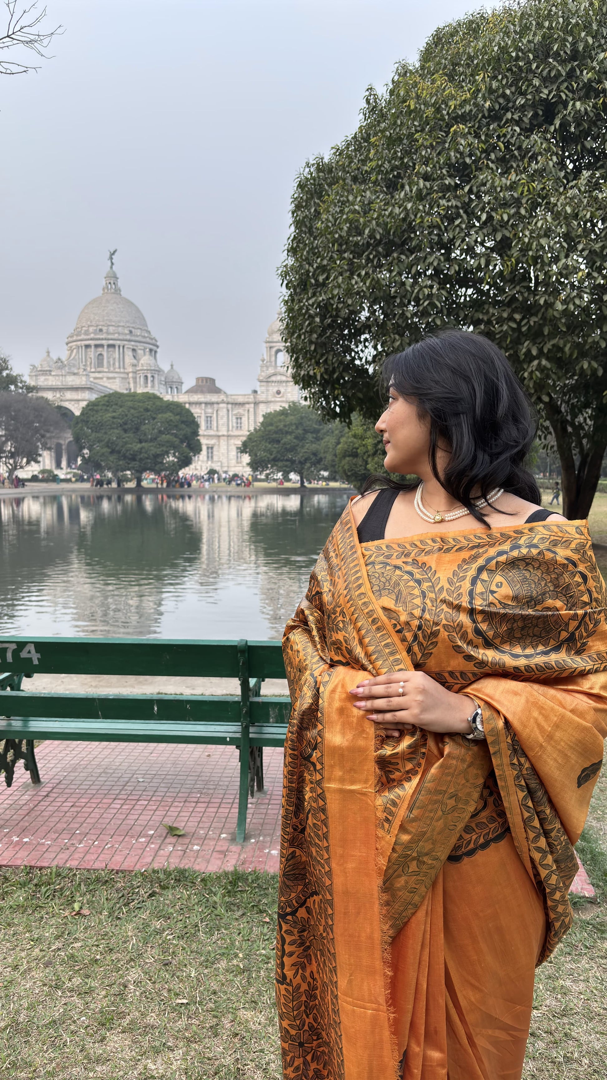 Pure Tussar Silk Saree- Custom Madhubani on Golden