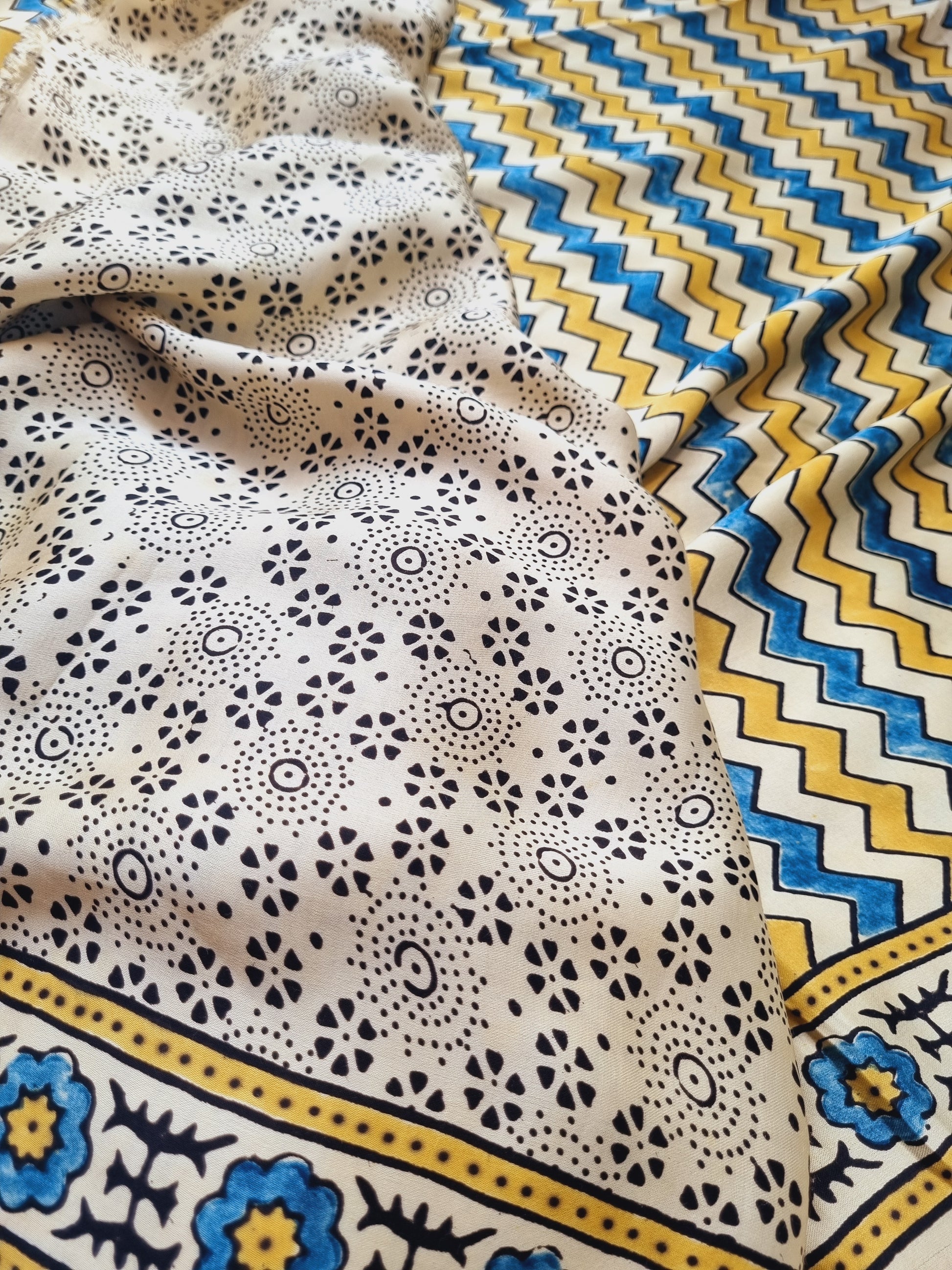 Ajrak Print Modal Silk Sarees- Leheriya yellow